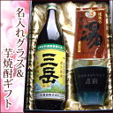 芋焼酎の「三岳」と名入れ焼酎グラスのセットギフト。